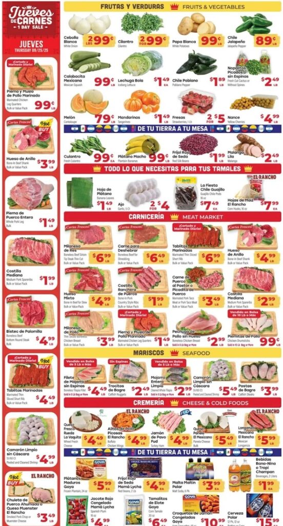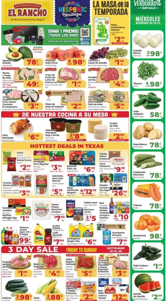 It has a cultural component as well. El Rancho serves families that appreciate traditional meals, as evidenced by the way the advertisement showcases its components. If you frequently prepare meals at home, you’ll notice that the deals match the items you already purchase. It gives the impression that the store knows what will truly be on the table, making the buying experience more intimate.
