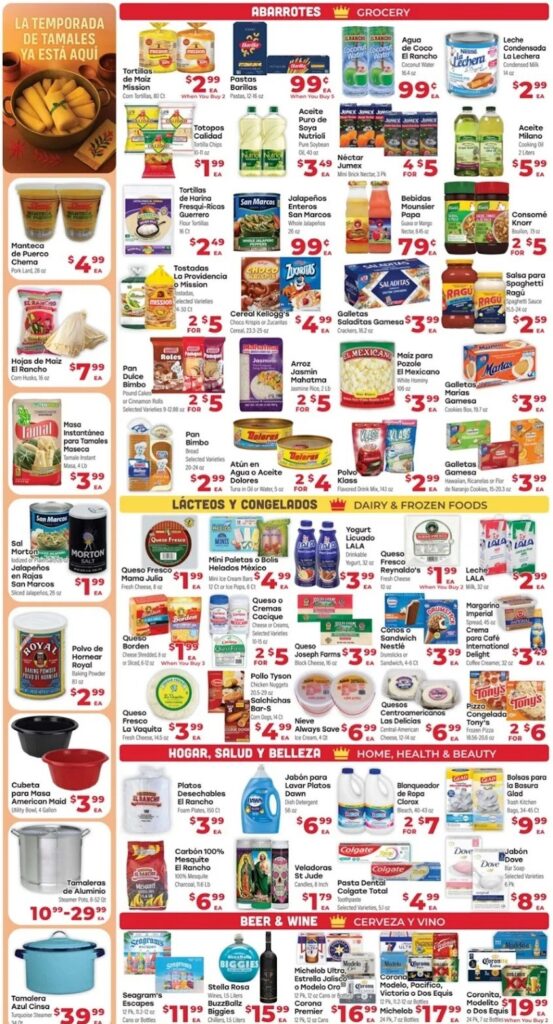 Dairy products, dry commodities, and occasionally baked goods follow. Rice, beans, cheese, and tortillas are frequently served, and when they are reasonably priced, you can use them for multiple meals. The advertisement isn’t overpowering. It’s straightforward. After reading it once, you already know what you’ll be cooking this week.